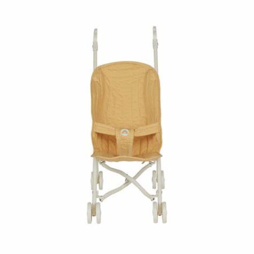 - Quilted cotton stroller seat paired with a durable, foldable metal frame.